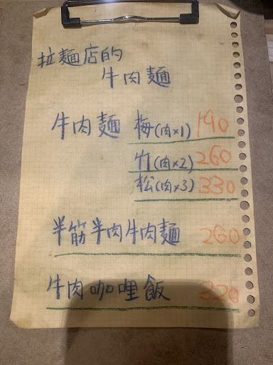 Read more1111119 似乎每星期二會有限定口味的拉麵,很值得嚐鮮欸 🌟豬排咖哩飯加歐姆蛋250+40-因為星期六只賣牛肉麵,還好還有這道可以讓不吃牛的男友嚐嚐,咖哩是我會喜歡的咖哩,甜口且十分濃郁,歐姆蛋十分滑順,炸豬排麵衣酥脆,肉口感是偏扎實但不算juicy那種,但我覺得整體來說我會想再吃,應該一個人吃的完吧?滿分-10~10分我給5分 🌟烤豆腐60-三塊外皮像油豆腐,裡面是非常軟嫩的豆腐,皮烤的非常酥脆,媲美炸的口感了,沾著醬油醬泥蔥花還有不知道是什麼很清香,覺得很不錯,但因為很大塊,味道很難進去,所以我吃一塊就好了,滿分-10~10分我給3分 🌟半筋半肉牛肉細麵260-真的是一塊是筋一塊是肉的牛肉麵,有細麵跟刀削麵的選擇。因為以前不吃牛肉,所以開始吃時在找好吃的牛肉麵,每次都蠻失望的,不是太鹹就是肉太乾,不然就是麵不入味。但在這家我找到我的命定牛肉麵了,還可以外帶牛肉麵,很不錯👍,只在星期六賣牛肉麵,其他時間是賣拉麵。 看湯,我就覺得我應該會喜歡這種湯,是清澈的湯,不是紅燒那種很濃很鹹的感覺,而且味道很夠,有點微微辛感但不會辣,風味很豐富。上面妝點蔥花跟西洋芹,我必須說西洋芹對我來說有畫龍點睛的感覺,他的特殊香氣讓整體感覺多了清爽感。湯中好像有碎碎脆脆的洋蔥還是西洋芹,吃不出來,但每口都有爽脆的口感。細麵的部分,可以免費加一次麵,帶著Q順的口感,又吸附了湯汁,我真的很喜歡湯麵這種感覺。再來是一塊是筋一塊是肉的半筋半肉牛肉麵,我覺得牛肉麵就應該長這樣欸,以往吃到其他家的牛肉都有種乾乾柴柴的感覺,但他的肉,筷子一夾就散了,很鬆軟口感很嫩又十分入味,我是第一次吃到全部都是筋的牛筋,十分有趣,有點像果凍吧,也是很入味,吃到最裡面的髓會意猶未盡,雖然筋真的很好吃,但我個人比起筋更喜歡肉,所以應該是看未來的當天有沒有想要吃QQ的純筋,若不需要我應該會吃松竹梅的兩塊肉吧,阿吃完才想起來忘記配芥末了,但我也忘記芥末是拿來幹嘛了啦哈哈,滿分...