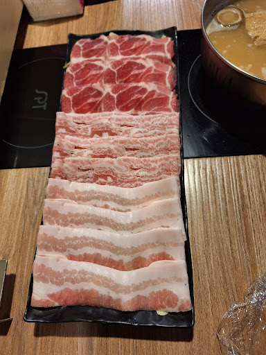 麻辣湯底👍:湯底也是店家招牌,自己熬製,香、麻、辣兼具,擺脫普遍麻辣鍋不適合喝過多的湯,是款好入喉不燥熱的優秀湯底。也可依照個人口味調整辣度,老闆用料沒在省的,要多辣都能配合,但千萬不要第一次用餐就點太辣,可能會不敢吃造成浪費,不夠辣再請店家加辣度即可。 肉 & 海鮮__ 精選三豚👏:不愧為“精選”,豬肉三大巨頭 ✓梅花 ✓五花 ✓松阪,一次可以享用到不同層次的口感;梅花的嫩、五花的油、松阪的脆,表現的都很稱職。 ★肉量真的很多!😱