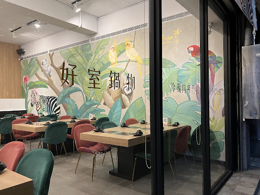 好室鍋物在新竹動物園附近,共有兩層樓營業。 一樓是動物園熱帶風格,除了綠植造景,還有鸚鵡模型及動物畫牆,在一樓用餐彷彿置身在動物園。位置有吧台單人區、四人座為主。 二樓是裝潢典雅風格,四人、多人座位,還有半包廂。還有電梯可搭乘。