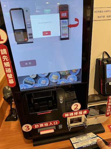 Read moreTotally automated sushi restaurant. Good sushi for conveyer belt sushi, quite inexpensive. Equivalent of US$40 for two people and 4 beers. Menu displays are in English as well. After every 5 dishes, you get a chance to win a capsule toy (gashapom); kids love this. If you've never eaten at a restaurant like this, couple of things to know: 1- slide the plates into the slot when you're done (each plate is the same cost); 2- grab a tea cup on top of the conveyer console, and fill up at the table; 3- use the tablet mounted above the conveyer to order items not appearing on the belt (inc. drinks); 4- when you're done with your meal, again tap the appropriate command on the tablet to...