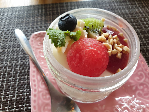 The fruit and cream croissant for dessert is really nice.