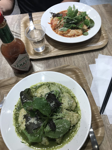 餐點部分,先說重點:味道清淡普通、麵條口感Q彈,價格不算實惠(以餐點食材及體驗來評)。 這次跟友人點了四樣,北海道干貝明太子生麵、青醬蛤蜊生麵、墨魚海鮮生麵、奶油白醬海鮮燉飯,都是加麵加飯。餐點在加麵加飯之後份量還是不多,如果本身是食量比較大的朋友可能不太滿足,味道部分算蠻清淡的,白醬佐明太子味道會比較足夠,青醬屬於清淡不油膩的,墨魚麵部分帶有淡淡的海鮮鹹味,白醬燉飯部分味道也偏淡。招牌的生麵條口感Q彈,以白醬口味會比較容易吸附醬汁,整體口味來說算是清淡,但配上價格來說,CP值就稍低了,喜歡嚐鮮的朋友還是可以試試看。