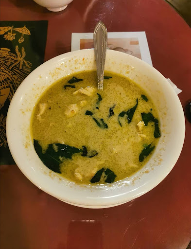 Ordered the green chicken curry. The coconut milk was separated like it was bad and the only flavor was salt. The chicken was bland and had obviously been cooked by boiling in water separately. It literally tasted like nothing. The only thing in the curry other than bland chicken was a few green peas. No aubergine, onion, snow pea pods, or anything aside from basil. Easily the worst curry I have ever eaten. Boxed curry from PXMart is better. My wife's red curry wasn't much better. At least the Singha is cold and cheap. I told the server who spoke English but nothing was offered other than an apology. I would have been happy with Pad Thai as a replacement. The curry went uneaten and I had to get something else at another...