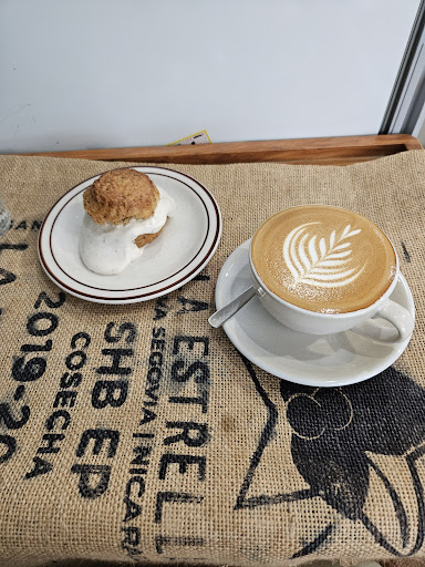 Read moreA small hipster space (string lights, store merchandise and all). There are three small tables inside and an additional three outside. You are required to order a drink to dine in. The drinks are reasonably priced so it's no big deal, especially as you need a beverage to pair with their stale scones. Maybe that's why they need that cream sandwiched in. Definitely props for their flat white presentation and latte...