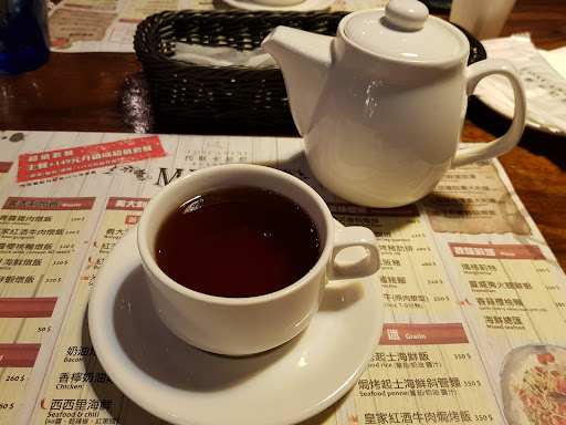 點了『馬賽魚港紅茄海鮮義大利麵』:將各式海鮮(有淡菜、花枝、蝦子、干貝)爆炒,並佐以蕃茄燉煮的瑪利娜拉紅醬,是代表馬塞漁港風味的經典料理。紅醬調配得恰如其分,鹹甜酸甜好口感相當均衡,吃起來相當有海鮮的「海味」,十分鮮甜,口味濃郁卻一點都無負擔,相當完美好吃的一道料理。