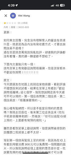 過程中沒有像某些評論影射諷刺,也沒有用沒禮貌的用詞,結果貴店的老闆尊貴到不行,完全不能接受評論,看完後跑來我私人帳號罵人(還假裝自己只是跟店家合作的塔羅牌師?)。