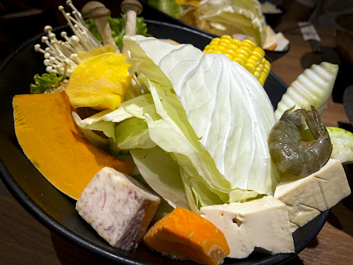 嚴選小肥牛肉鍋:$350 他們都菜單基本上火鍋料不多,都是新鮮的蔬菜,不過我自己是火鍋料派的,但只要食材新鮮我都可以。他們火鍋料盤讓我最喜歡的應該是他們的芋頭丸以及地瓜,芋頭丸裡面可以品嚐當鹹香四溢的芋泥,對於把芋頭放進火鍋裡煮感到反感的我,卻很能接受這個。另外就是餐盤裡竟然有地瓜而且好甜喔~通常看到有南瓜就差不多了,裡面有些我沒想到的配料,總之菜單的部分很不錯,蔬菜都很新鮮沒有土味。
