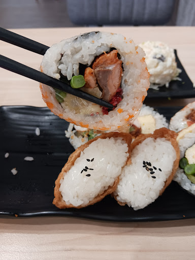 鮭魚肥嫩,飯有點硬,整體還不錯。