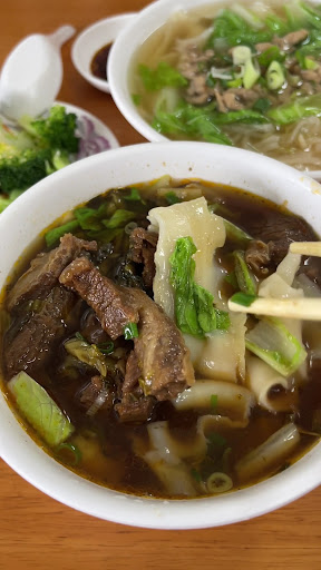 Read more觀望很久的在地店家 每次經過都人潮爆滿 難得遇到人少點就決定吃了 #小碗牛肉麵(辣味) 這家牛肉麵都是做辣味的 想吃不辣的 可能就要點別的了 湯頭部分 略辣 但多喝幾口之後 就還好不會太辣 越喝越順口 會不會太鹹呢? 我是覺得還好 吃完不會想馬上找水喝 我是覺得蠻好喝的 麵條部分 是現削現煮刀削麵 我覺得厚度適中不會過薄過厚 有些許比較碎的麵條 但我覺得不礙事 因為畢竟人工本來就不像機器一樣這麼精準 每條都一樣 但削麵的人已經滿厲害的 每個麵條大小差沒多少🤣 吃起來QQ的 不會太硬太軟 👍 牛肉部分 有幾塊特別嫩 有幾塊偏柴 有點可惜 整體來說 是不錯好的 還是會想再來吃第二次的 #榨菜肉絲麵 同行友人的 有試了一下湯頭 蠻清爽的 想吃清淡點的 可以考慮 份量也是蠻多的 麵條也是現削現煮刀削麵 #小菜 花椰菜 櫃檯附近有個小菜櫃 裡面放了各式各樣小菜 可以挑選 但是這次拿的花椰菜調味好像有點下手太重了 總覺得比我的牛肉麵湯頭還要鹹😂 這有點可惜了 不然應該會是5星的?