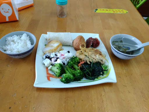 Friendly lady at the counter who treated me (a hijab -wearing Muslim lady) well and even tried to strike conversation. So you go in, grab a plate by the door, put whatever food from the display onto your plate and send it to be weighed at the counter. They will then give you a bowl of rice to go with it. Soup, next to the counter, is free. Price was very affordable. My plateful of assorted dishes, with a bowl of rice cost less than 100 Taiwan dollars. Highly recommended for non-chinese tourists looking for vegetarian food (I gave only 4 stars cos the food was kinda oily and not too healthy despite...