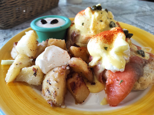 Comfy eatery spotlighting American-style brunch & lunch offerings such as eggs Benedict.