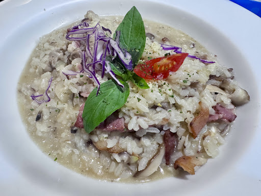 晚上八點來到店門前,柔和的燈光和木質裝潢營造出一股家的溫暖。一進門,淡淡的香氣撲鼻而來。坐下後不久,燉飯便端上桌,熱騰騰的模樣讓人胃口大開。舀起一匙送入口中,那濃郁奶香與番茄酸香在嘴裡交織,瞬間就明白為什麼這道菜會成為招牌。搭配Q彈的海鮮,每一口都讓人意猶未盡。