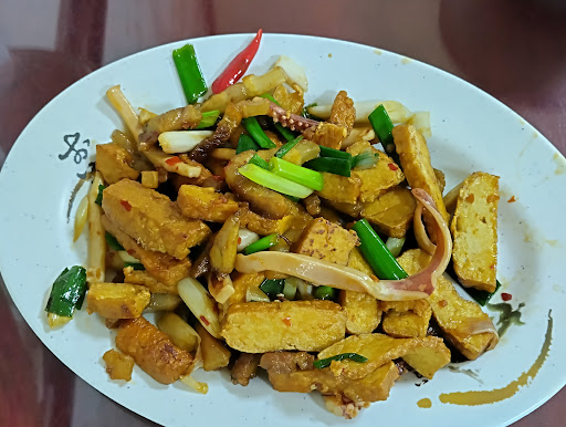 ❇️客家小炒豆乾、肉絲都炸的很酥脆,味道不錯,可是不像傳説中的客家小炒;料是都對了,可是不鹹、不辣、不油;應該是改良過。