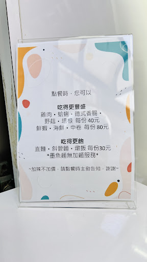 超好吃cp值很高的義大利麵~ 只提供外帶 位置也蠻隱密的不在大馬路上~ 麵條可以選擇斜管或直麵 也有燉飯 醬料有:紅醬/白醬/青醬/粉紅醬/清炒 也有肉醬麵、墨魚麵 加辣是用乾辣椒~~ 義大利麵都有節瓜跟玉米筍 讚死! 希望可以有加蔬菜的選項~ ▪️青醬雞肉$140 很濃郁 不會水水的 雞肉很大塊 不柴 感覺有醃製過 好吃到會想把醬汁舔乾淨🤣 ▪️漁夫海鮮墨魚麵$190 海鮮非常新鮮而且蠻多的 蛤蜊 鮮蝦 中卷 蛤蜊口感剛剛好 不會過乾 中卷很脆嫩 口感很好 蝦子有處理過...