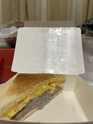 直接看圖(老闆對不起,我拍的好醜🥲 從來沒看過有一份吐司竟然能比一個紙餐盒還厚 那個芋泥跟不用錢的一樣 就是加到爆 四個字啦