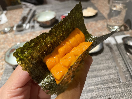 ⭐️海膽握壽司🍣 上次是在日本吃海膽, 那個腥味我永遠不會忘記 在這裡!顛覆我對海膽的印象! 第一次吃到這麼甜美的海膽! 大口塞超滿足~~~