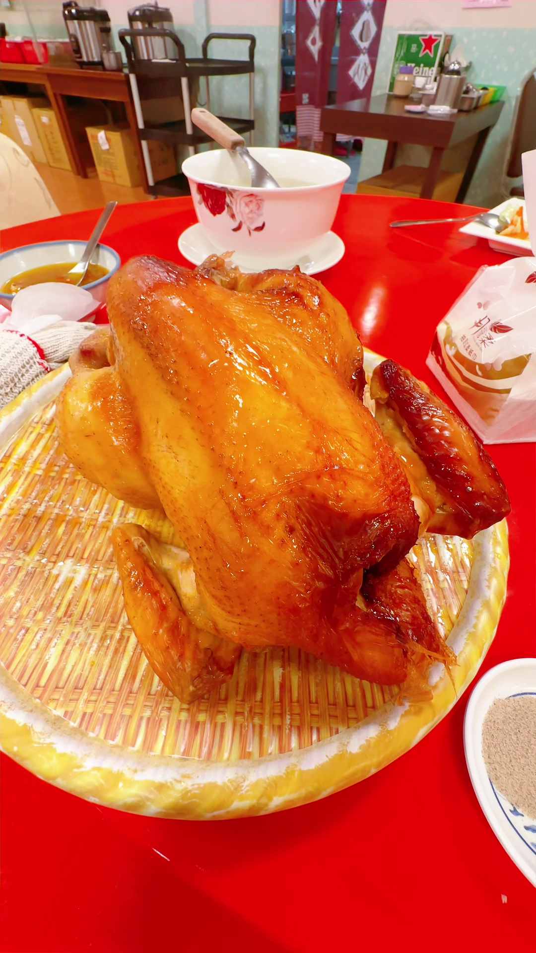 三個人餐點沒有烤雞! 另外最加點烤雞要$700 因為有詢問過客人四個人餐點比較划算! 因為客人覺得四個人的份量太多 所以這邊還是幫客人以三個人的量出餐! 三個人$1200(魚換烤雞補貼$300) 當下有跟客人告知! 四個人比較划算!差$100 菜色也會不同!分量也不同! 那礙於客人當下有說小孩吃不多!