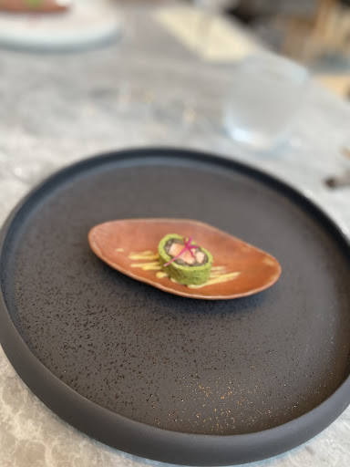 2023/9/1當晚所有的食材雖是高檔無菜單料理所常見,如生魚片(來自南方澳或大溪漁港的在地漁獲)、鮑魚、馬頭魚、美國牛Prime等,但讓我讚賞的是,主廚團隊將大家熟悉的食材揉入了特有的烹調匠法、食材混搭創意與細緻謹慎的調味,讓賓客味蕾可嘗到食材天然的口感與鮮味。我的解讀,每道菜的調味被定位在"最佳配角",負責襯托海鮮食材本身的甜味與尾韻,不搶戲卻缺一不可,實屬難得的大師級演譯,我給兩根大拇指!! Two thumbs up!!!