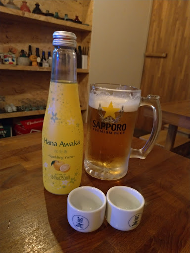 9.酒(點了兩種): 我們平常不喝酒的女生,點了”柚香氣泡酒”$380,小貴但真的蠻解膩的,酒精濃度5%,很好喝,裡面滴一些檸檬汁感覺提味更好喝!! 男生點了”生啤酒”,超級大杯,喝到超級飽,最後剩了一些沒喝完😂