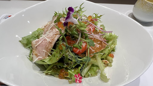 我不是喜歡吃沙拉的人,但這沙拉我覺得很好吃,生菜口感很細嫩,搭配的烏魚子烤得剛好,整體很精緻,是我喜歡的味道。