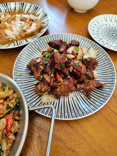 Read more我們來之前有先點單了,所以落座後菜上的很快!(店家是能夠線上點餐的!) 我們四個女生,點了: 1.雲南大薄片(酸爽開胃 2.蟹黃豆腐煲(要先預約才有。濃濃海鮮 味,吃得到螃蟹肉肉的腳 3.泰式綠咖哩雞(下次會再點辣一點 4.月亮蝦餅(真的吃得到蝦子。搭配的醬吃起來有梅子味,不是泰式酸辣醬 5.水煮牛(麻辣香 6.蝦醬空心菜(蝦味十足 7.泰式奶茶(個人原因沒有喝,不過友人 說奶味十足 8.銀耳紅棗湯(膠有煮出來,濃純香 總的來說,環境乾淨明亮,店家態度也很好,是一間值...