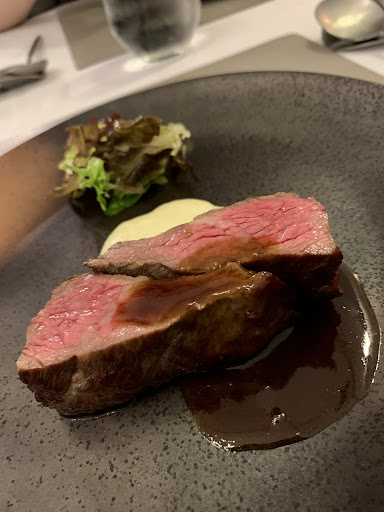 ▪️鴕鳥|花椒|茴香頭|豆漿 店家喜歡用一些野味入菜,鴕鳥是平常比較少看到的食材。 鴕鳥肉口感很像更扎實的牛肉,剛剛好的熟度搭配豆乳醬汁 真的很讚! 花椒油點綴下更增加了整體的香氣! (但是我看不懂盤子那個黑黑的噴墨設計,一開始還以為是醬汁XD)