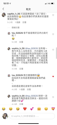 109/10/06更新 回覆老闆 完全看得出你很在意評價的事。我都不想理你了,你還一直改評論誣陷我騷擾你🤷🏻♀️誰騷擾誰大家都有眼睛看,不是你說了算。你可以不要再煩我了嗎?我不需要當部落客,也沒那個閒功夫,「想推廣我的IG是在威脅我嗎?」而且我並沒有在你滿是客人的時候要求你切!沒切就算了,就是看不慣你刪留言害我被誤會!你到底想怎樣?想要我更改評論就明講~...