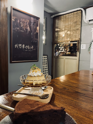 This coffee shop has a fantastic location in the shade of a building snuggled into the corner of the street. It is filled with old cameras and books. There is also a cat lounging around adding to the calmness of the shop. The coffee was good 7.1 however my cheese cake was still frozen on the inside which didn’t take away any of the flavor giving it a 6.2. All over you don’t come here for the coffee but...