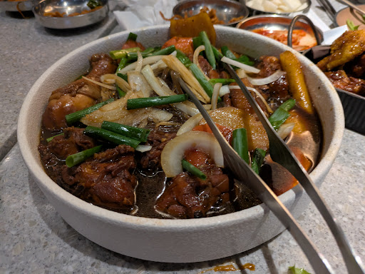 Very classy and upscale atmosphere with reasonable prices. The restaurant is located on the 2nd floor and it didn't seem like there was elevator access. The menu isn't huge but offers a decent selection of Korean cuisine, including bolgogi, bibimbap, grilled meat, cold noodles, and stone pots. Five small dishes and barley tea are provided and replenished free of charge. The waiting staff was kind and helpful, especially since this was our first visit. She made a few recommendations for what to order and portion size. Suitable for groups or couples. The bathrooms were clean and...