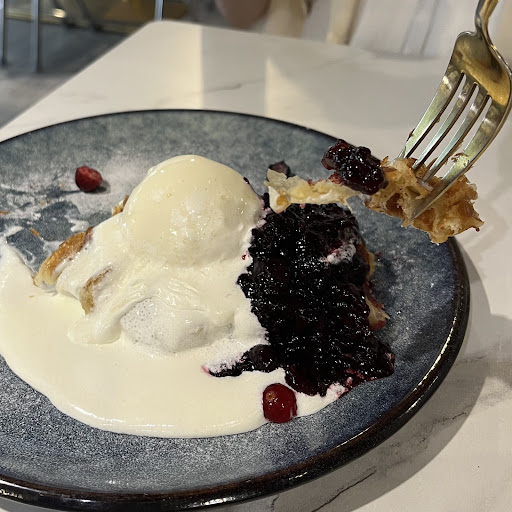 ✔️莓果可朗芙$150 (點餐可加點變$130) 外皮烤的很酥脆 剛上桌的時候真的熱騰騰 配上熱熱的藍莓醬 還有一勺底層奶油醬 酸甜的滋味 很適合在正餐後來上一份 搭配香草冰淇淋 整個很解膩🤤🤤🤤
