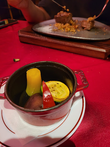 主餐我認為是好吃的!全部吃下來只有這個才有在西餐廳吃飯的味道,是採用鐵盤,上桌後還可以熱熱的品嚐,只是當天客人可能太多了,鐵盤還沒有加熱到那麼的燙,一下子就冷了,還有一點我有點疑惑,為什麼鐵盤都是中間凸起來的呢🧐 記得我小時候來吃是平的啊,難道是用太久都沒換嗎,切肉都不好切,搖搖晃晃的 但搭配蒜末這點感覺很讚,很香,只可以不是蒜片,若有需要黑胡椒醬可以跟服務員說,我覺得加一點醬沾著吃也別有風味!