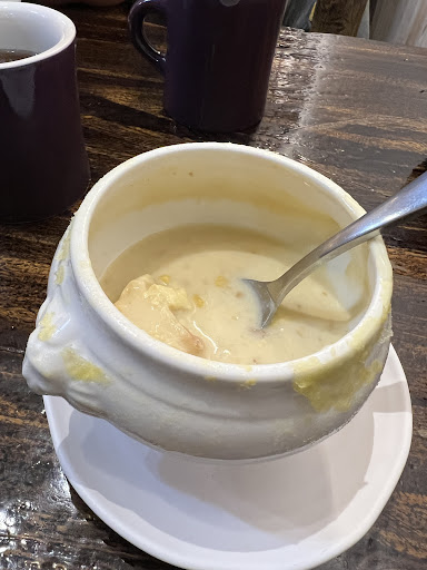上面酥皮是很用心做的酥皮,烤的酥香薄,濃湯香甜濃郁,每匙都喝的到圓飽滿的玉米粒,聽說店家加了秘密武器「地瓜」,地瓜美味自然甜讓濃湯滋味增色不少。