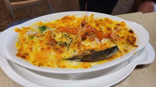 I started off with the fish and chips , which was absolutely delicious. The flavors were perfectly balanced and the presentation was stunning. For our entrees, my wife opted for the seafood cheese rice bowl. Both dishes were absolutely outstanding - the ingredients were clearly top-quality, and the execution was flawless.