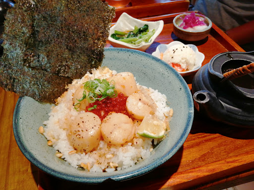 Japanese-style brunch & dinner dishes cleverly presented on wooden trays in a contemporary setting.