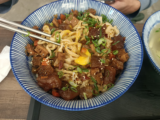 The noodle shop in the lane is near to the corner facing the park. It is a cozy place to enjoy a yummy noodle meal. There are many seats inside. Tea is free for sit-in customers. The shop specializes selling soup noodle with savory soup stewed with fish bone. Several flavours is available. A meal set contians some appetizer dishes and a big bowl of noodle. The portion is quite big while the price is moderate. It is truly a nice place to gather with friends and...