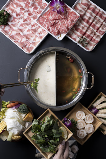 店內提供7種湯底自由選擇,除了有打底基礎的每日現熬清甜昆布湯外,秘製湯底「獨門十三香湯」為店內特色湯底,很適合涮上肉片,提得起肉的鮮甜外,滲入的孜然與胡椒香氣,融合得恰到好處,被高溫支配的夏季,推薦點「泰式綠咖哩湯」,混合椰奶與檸檬葉的東南亞香氣,涮肉或涮海鮮體現又香又濃郁的層次,是開胃消暑的最佳選擇