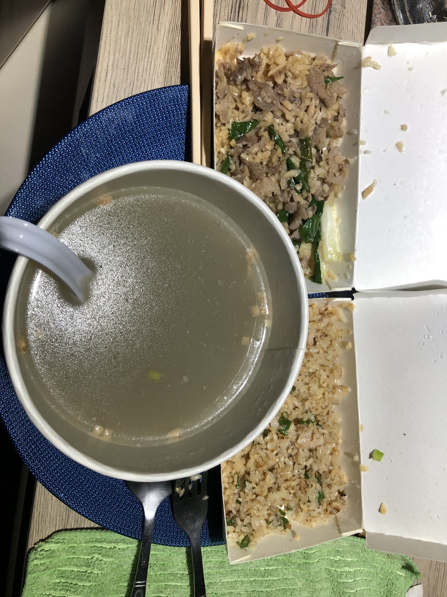 The food all looks and tastes the same. The meat in my chicken fried rice is small. The pork is stringy. The ouster soup doesn’t taste very fresh, even on a Friday night.