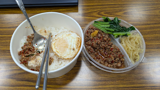 Read more這家便當店應該是楠梓的潛力股 我先來幫台積電員工試吃看看~ 調味風格偏台式 辣度均可調整 泰國茉莉香米保留咬勁 小菜有青木瓜沙拉 三份主菜最喜歡打拋豬 微辣下飯還有湯汁 看到圓形煎蛋其實有點忐忑 沒想到居然是軟嫩的流心半熟蛋 內用座位簡陋沒冷氣 大家幾乎都是外送居多