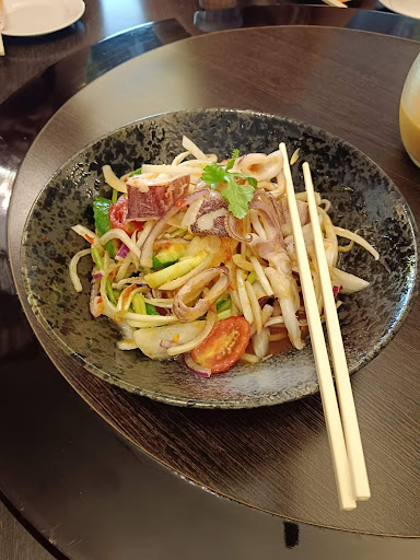 Read more今天點了5-6人合菜, 其中的椒麻雞換成了 炸豬肉,所有的菜色都選擇小辣,但小辣並不辣……有點失望。 這間是道地的泰式餐廳 老闆娘也是泰國人, 這間是朋友推薦的 他們這次是二訪, 據他們所說第一次來吃的時候比較好吃,所以這家餐廳的菜色不穩定…… 飲料選擇了泰式奶茶 味道非常的道地很好喝, 但非常甜 所以喝到後面會覺得很膩。 先說說第一道菜,涼拌花枝: 這道料理很好吃 夠酸也夠辣,花枝切很大塊也很新鮮很好吃 。 椰汁雞: 這道很推薦 非常的下飯 味道帶有淡淡的奶香味 綠咖哩海鮮: 這道是店員推薦的店裡只有賣牛肉但同桌的朋友不吃牛,所以我們請店員幫忙換成海鮮,這道料理也很下飯, 不過咖哩味 比較淡不濃厚比起咖哩雞我會更喜歡咖哩雞。 打拋豬: 這道料理讓人有點小失望他一點都不辣而且炒得不夠乾太濕了, 然後辛香料的味道也不夠重…… 但依舊很殺白飯😆😆😆 蝦醬空心菜: 蝦醬的味道不夠重而且也不辣, 我夾兩次就沒夾了,朋友說他們第一次吃的時候很好吃味道也夠重…… 所以這次算踩雷了 檸檬魚:味道帶點酸魚肉也很嫩, 這道門蠻推薦的 酥炸豬肉: 這套菜很推薦 沒有豬騷味 肉炸的酥酥脆脆也不乾 重點是他調的醬,加上他們調的醬酸酸甜甜的可以解油膩 泰式海鮮酸辣湯: 這道菜的湯很好喝真的夠酸只可惜辣還不夠辣, 如果要點這道菜的話建議辣度再往上調一點點,點個中辣應該會更好吃 月亮蝦餅: 這道料理非常推 蝦餅的餡料是滿滿的蝦泥, 每一口都吃得出來蝦泥, 而且是蠻厚的一層 整體感想: 這次是6個人一起去吃總共8菜1湯平均一個人560塊 , 價錢還算普通不貴...