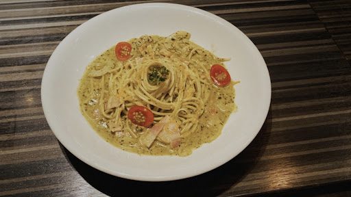 講回餐點 青醬培根麵整體味道平衡 該到位的味道都有到位 麵體跟醬汁也有處理的蠻平衡的 只是麵體稍嫌軟了點 個人比較偏好彈牙一點的口感 對了~加一點Tabasco 整體風味更讚喔!