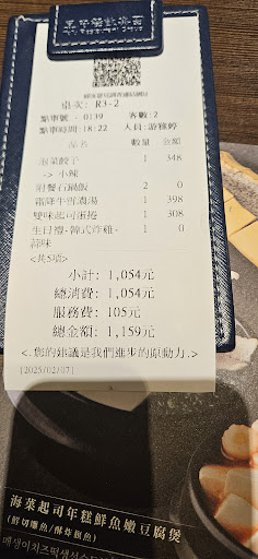Read more2025/02/07 #晚餐 #領生日禮 線上訂位要晚上8點才有位置,去逛寵物展就順便到樓上訂位,結果訂到晚上6點的位置,真好,整層樓就絹豆腐顧客最多,吃完出來外面還一堆人在等用餐。 現在小菜是一盤換盤的方式,覺得這樣不錯。唯一缺點就是餐具很多都不乾淨,所以用餐前還是要檢查一下。 #餃子豆腐鍋 約四顆餃子,不大顆,但皮薄內餡飽滿,口味不錯,蛤蜊約四顆,滿滿的豆腐,喜歡吃石鍋飯的鍋巴 #雪濃湯 現場煮肉加湯,轉身過去看服務人員作業,他正在加湯,他以為噴到我,所以有挪一下位置,其實我只是好奇想看一下而已,湯有滿滿的牛味,我不是很喜歡,但還不錯喝。 #雙味起司蛋捲 濃濃的起司會牽絲,沾蕃茄醬滿好吃的 #韓式炸雞 生日禮,蜂蜜蒜味口味,外皮酥脆 #甜點黑糖豆花...