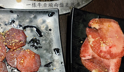 缺點 服務態度不佳 請把你桌上的東西清理完在點 (一顆星主要在這裡) 油煙很重 烤豬五花就全部都是煙了, 店員說要放在烤盤旁邊...@@ 排煙設備肉眼可見不起作用,吃一段下來保證一家香 (約會....額) 肉品品質差異比較大 (如圖 牛舌頭 同一品項, 差別三倍跟抽獎一樣) 品項較少可以是優點 但是品質並沒有控制好