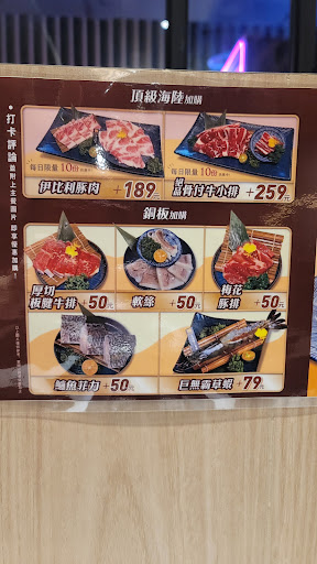 餐點:牛五花加橫膈膜雙拼 兌換點數:10~20點換多樣化肉片海鮮選擇