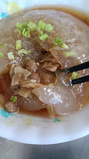 碗粿:粿很Q彈、配料很多,基本上中心地帶全都是配料👍,沾醬品嚐起來是屬於很清爽的不會太重口味👍。