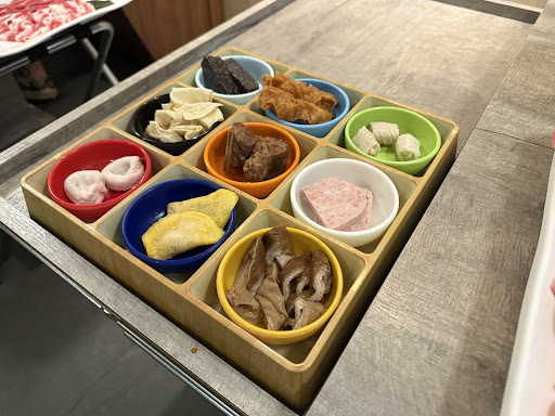 肉品方面,無論是牛、豬、雞的品質都在水準之上,油花分布均勻、口感滑嫩不柴,輕涮幾秒後入口,就能感受到鮮嫩與湯底融合的香氣,搭配醬料區自調的蒜蓉醬或香油醬,更能吃出層次感。海鮮部分的新鮮度也不錯,蝦子飽滿、蛤蠣吐沙乾淨,吃得安心又滿足。