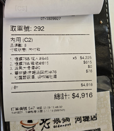 看到其他評論原本看到其他人評價寫服務態度很好,從帶位、點餐、加湯… 一開始帶位的服務人員就挺冷漠的 18:30訂位,位置保留10分鐘,在18:40前進入,帶位的服務人員要將我們6人分成兩個小圓桌要讓分散坐,老人表示要坐長桌,以表達了幾次可否換桌,原服務人員不想幫我們換,還好有其他服務人員幫我們換成6人桌。 點餐人員,可能因為比較忙,感覺挺急的。 19:10左右…🥹🥹🥹 服務生才推著有湯鍋和菜的推車 到我們桌旁…然後…就跑走了🤣 太傻眼了,不放桌上嗎 原來他跑進去拿大湯匙,但… 回來他又不知道怎麼放湯的位置😅 至於水耕菜 也是我們主動詢問經過的服務員 他表示就自己撥啊 (我記得我看評論說有剪刀😕) 之後才補剪刀給我們,說可以剪 關於加湯…此店可能沒有巡湯的服務, 吃到真的無法,才反應…結果加湯加錯了 另一位服務員發現後整鍋端走幫我們用, 並補一些菜給我們…. 等啊等,他們忘了還有另一鍋沒加湯啊 又叫了服務員,加另外一鍋湯 當他要加鴛鴦鍋另一個湯時, 湯壺卻沒了,只加了一點點….. 但至少能加減煮… 我們又等了等, 連整鍋端走的那湯鍋, 湯底我們從8分高度都吃到5分高度了 還是沒來補另一個湯啊 看到那時幫我們補湯的那位經過, 又叫了他補湯… 他沉著臉來的加湯,我們真的也等得尷尬啊 桌上沒有小垃圾桶丟垃圾,挺不方便的 廁所女廁有衛生棉以及衣物香氛噴霧 有無障礙廁所及尿布台 無糖綠茶蠻好喝不苦澀 壽星招待的豬腳好吃