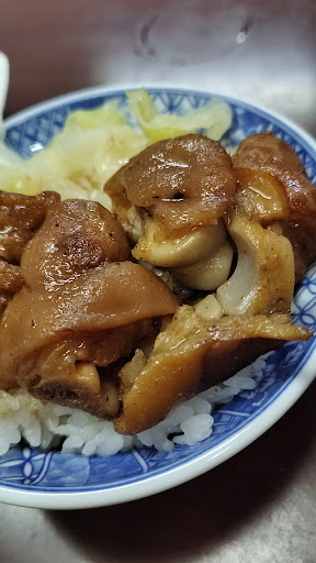 豬腳飯(小碗):稍微有一點點未處理乾淨的細毛但只要咬掉就好了,吃起來外皮Q彈肉質軟嫩,滿嘴都可以感受到豐富的膠質感👍,配菜的高麗菜吃起來比較軟爛但不會難吃口味還不錯👍,米飯的軟硬度煮的剛好不會太爛太硬。
