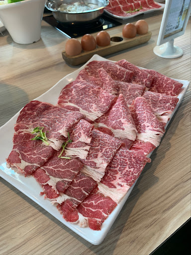 They offer a deal where if you get two sets sized L or XL, you get an extra platter of meat that you can choose from (which are like the basic cuts of either pork or beef, etc). The XL sets have better meat cuts, but the L sets are not that bad either, depends on the person. They also offer the option of whether you want a full vegetable veggie bowl, or a veggie bowl that contains some hotpot processed foods, like dumplings or imitation crab, etc. Aside from these, there is also a self-serve bar for drinks and Meiji ice cream.