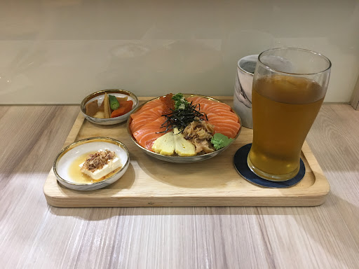 Read more這在一間我常常去的漫畫店附近,那天偶然發現就和公主N來,沒想到公主N非常喜歡這間,於是我們又二訪: ↬極鮮鮭魚親子丼(生) 我覺得鮭魚份量還蠻有誠意的🤤飯有點點偏硬,但是絕對不影響整個丼,整份吃下來還蠻有飽足感的,他們的湯很特別是用杯子裝的,湯和小菜的都味道偏淡。 ↬100%純牛奶酪 它是裝在一個窄口瓶裡面,有一點點難挖,可以吃得到它是真的用高比例的牛奶做的,沒有什麼布丁偶爾會吃到的硬皮,也不會過甜。 ↬雙拼生魚片 第二次來就想吃點別的,而且也不想吃太多飯,所以就點了生魚片,我覺得鮭魚比較新鮮好吃,我不常在日式料理店吃生魚片,所以七片不知道算不算少,反正我有點點沒吃飽就是了。 ↬精選炙燒壽司 我一開始先從我最不期待的開始吃:炙牛肉,但是這個變成我最後最回味的一個,他們的炙牛肉可以不用沾哇沙米吃,就很有味道了,因為是炙燒所以還流出一點點油,吃下去真的很開心,干貝和鮭魚就比較一般,下次整盤都點炙牛肉就對了。 ❛...