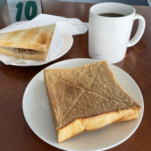 🥩燒肉吐司+☕️紅茶$45 烤過的土司夾著高麗菜絲以及一塊肉,覺得算正常早餐有的分量,加上紅茶,紅茶很有古早味,不會很甜,價格很便宜